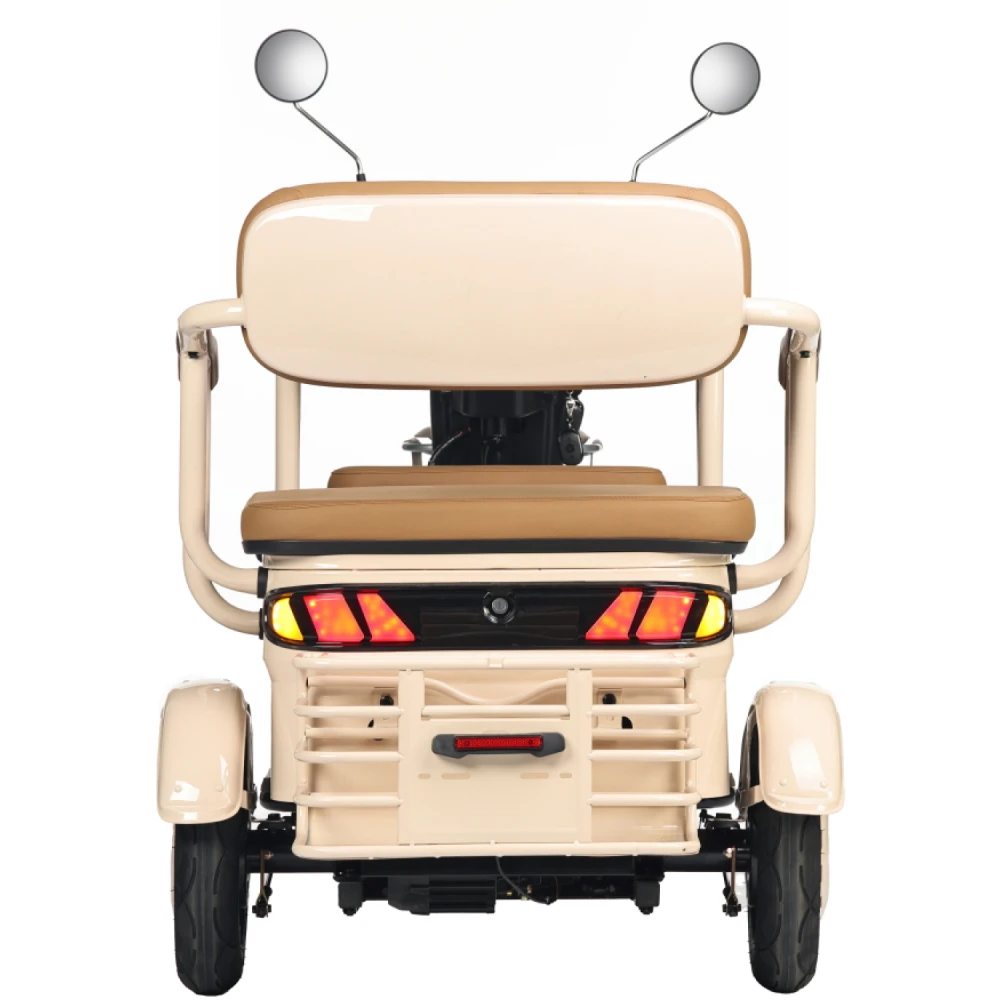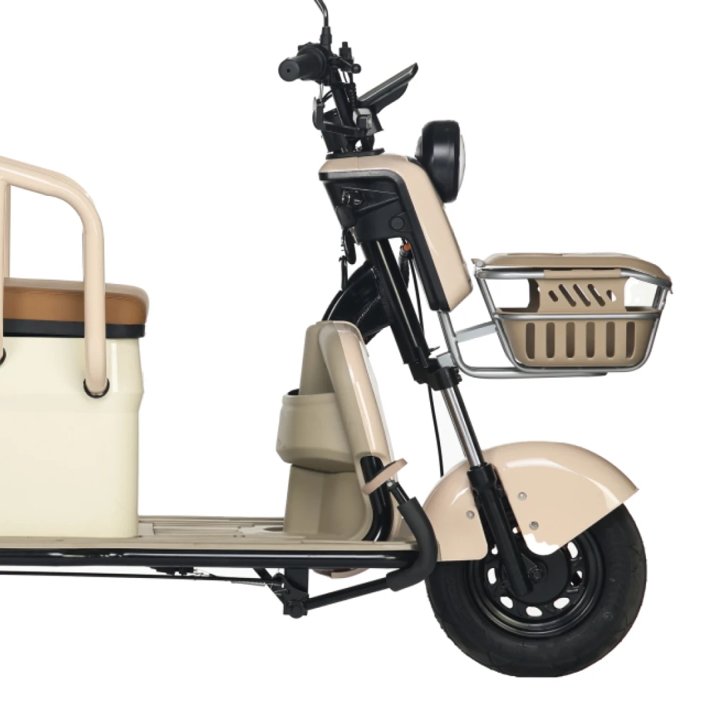 Электротрицикл Rutrike Gelbert Atlas 48V/60V 600Вт – это современное транспортное средство, созданное для комфортного передвижения в условиях города и за его пределами. Модель выделяется элегантным бежевым оттенком, придающим ей утончённый и стильный вид, а также продуманной компоновкой, которая обеспечивает отличную устойчивость и удобство управления.Благодаря двигателю мощностью 600 W, работающему на диапазоне напряжения 48/60 V, Atlas уверенно стартует и поддерживает стабильную динамику, достигая максимальной скорости до 25 км/ч – оптимального показателя для спокойного городского движения. Компактные 8‐дюймовые колеса способствуют надежному сцеплению с дорогой, что особенно важно при маневрировании в условиях ограниченного пространства.С весом 95 кг и способностью выдерживать нагрузку до 190 кг, этот электрический трицикл демонстрирует баланс между легкостью и прочностью конструкции. Его габаритные размеры (148×81×65 см) позволяют устройству занимать минимальное пространство при хранении и транспортировке, оставаясь при этом функциональным и устойчивым на дороге.Электротрицикл Atlas от Gelbert спроектирован с учетом современных требований безопасности и удобства эксплуатации – надежная система торможения в сочетании с продуманной эргономикой делает каждую поездку не только комфортной, но и безопасной. Эта модель станет отличным выбором для тех, кто ищет практичное и стильное решение для повседневного передвижения, совмещающее высокую технологичность с оригинальным дизайном.