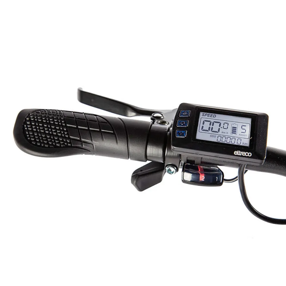 Главное преимущество данной модели - большая автоматизация управления. Съёмный велокомпьютер с LCD-дисплеем, расположенный в рулевой части, оснащён гибкой системой настроек.