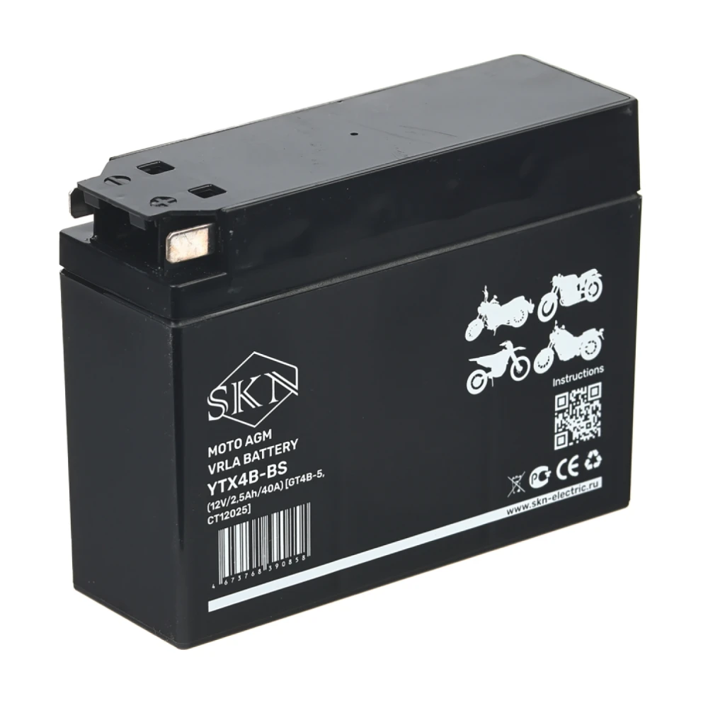 Аккумулятор стартерный для мототехники SKN YTX4B-BS (12V/2,5Ah/40A) [GT4B-5, CT 12025]