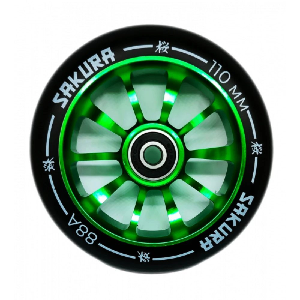 Колесо для трюкового самоката Haevner алюминиевое (110мм/ABEC 9) черно-зеленое